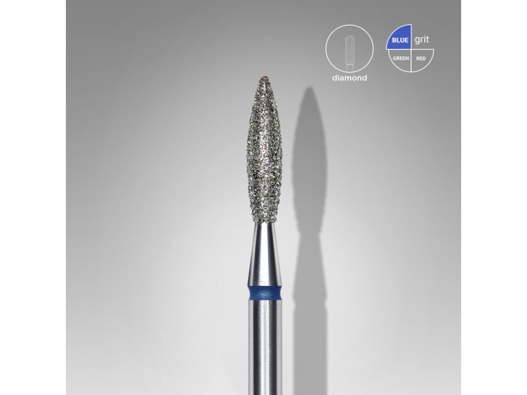 Diamantová fréza pre prístrojovú manikúru/pedikúru s modrým označením strednej hrubosti. Tvar „plameň“ je určený na spracovanie nechtovej kožičky, bočných valov a vypilovanie odchlipov bez rizika poranenia kože. Vhodný nástroj pre začiatočníkov i pokročilých.