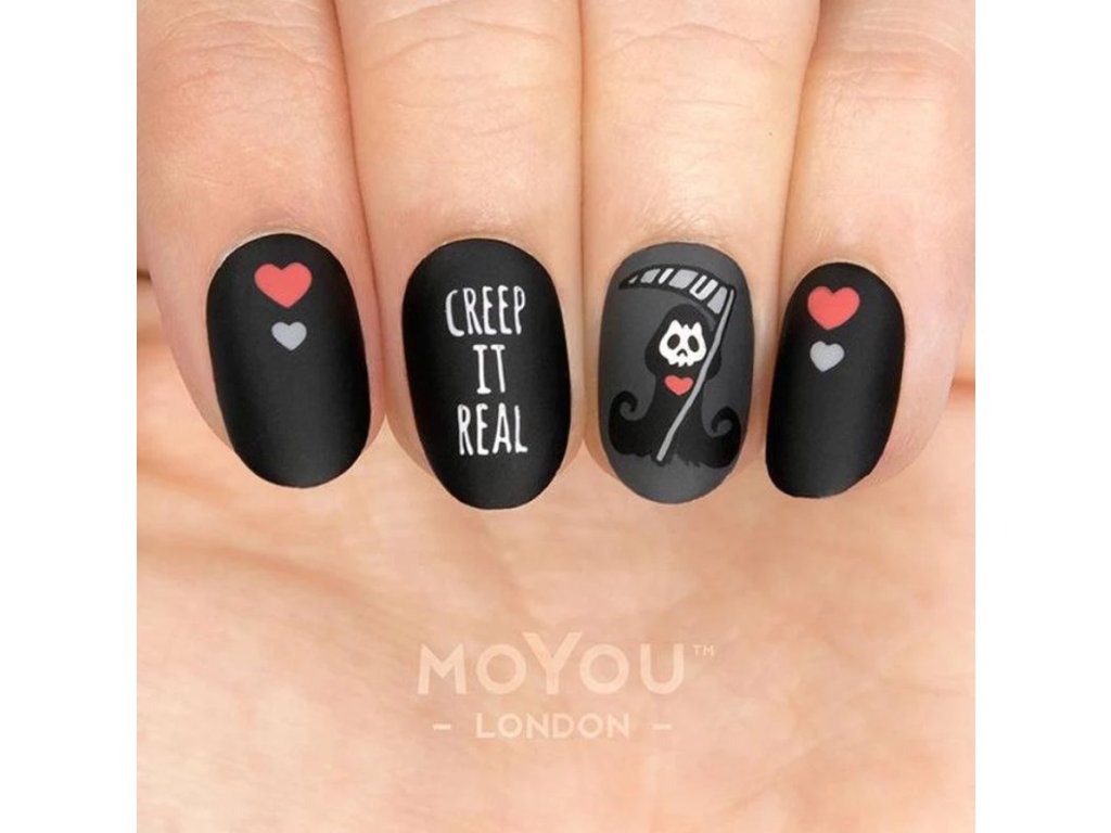 > MoYou-London image destičku použijete tak, že nanesete speciální razítkovací lak na obrázek, setřete stěrkou a přenesete razítkem na nehet.