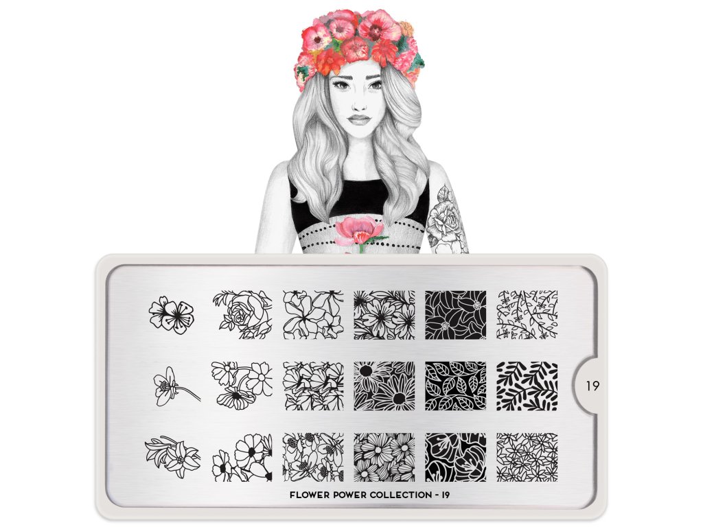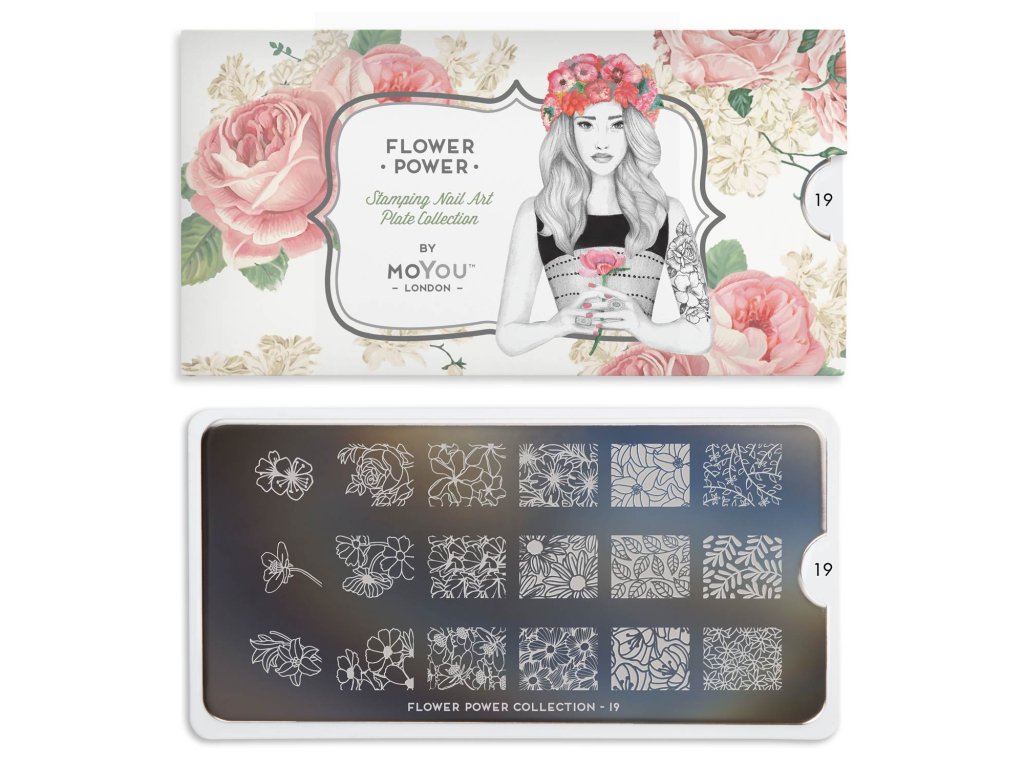 > MoYou-London Flower Power 19 se skládá z 18-ti rozdílných motivů, každý o rozměru 1,2 x 1,5 cm.