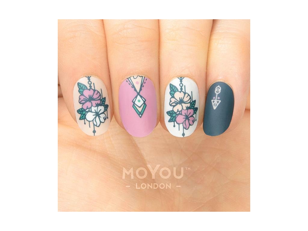 > MoYou-London image destičku použijete tak, že nanesete speciální razítkovací lak na obrázek, setřete stěrkou a přenesete razítkem na nehet.