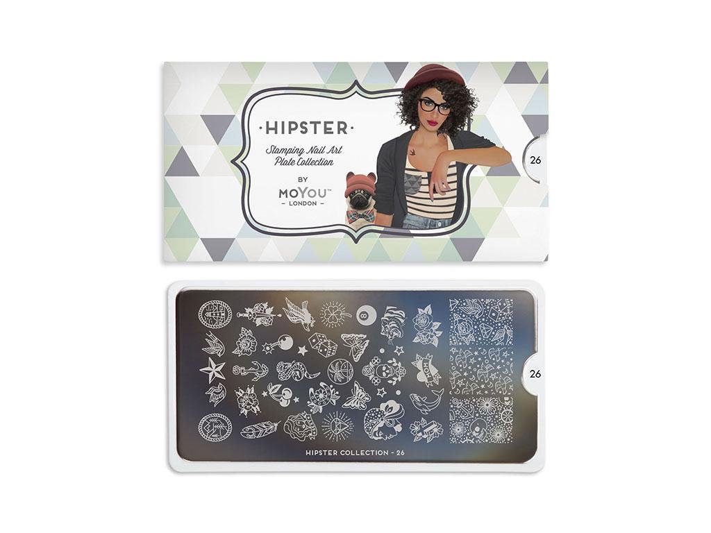 > MoYou-London Hipster 26 se skládá z jednoho velkého designu a rozměru 10.5 x 4.7cm skládající se z několika menších motivů.