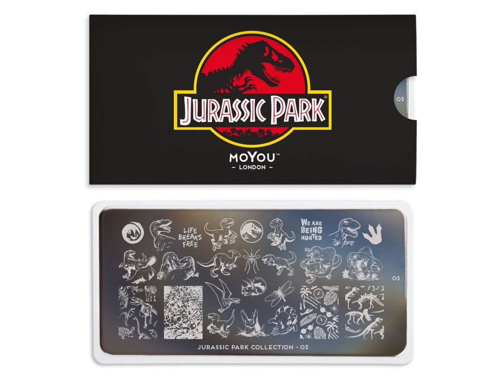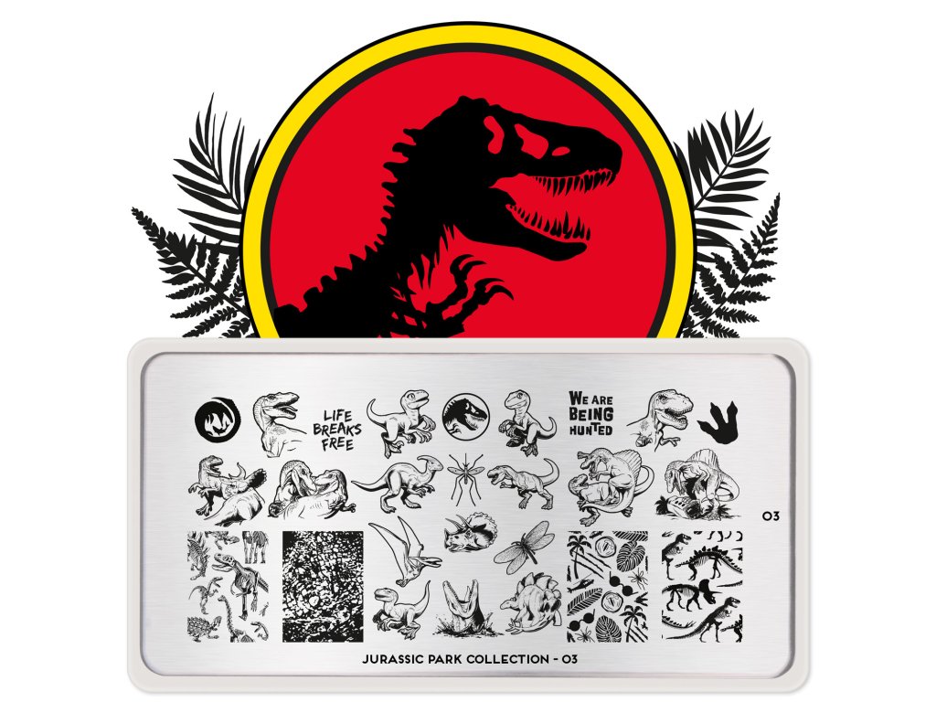 MoYou London s hrdostí představuje destičky inspirované Jurským parkem. Kolekce plná tropických vzorů, ilustrací inspirovaných filmem a spousty obrázků dinosaurů na hraní! Protože nail-art... uh... najde cestu.