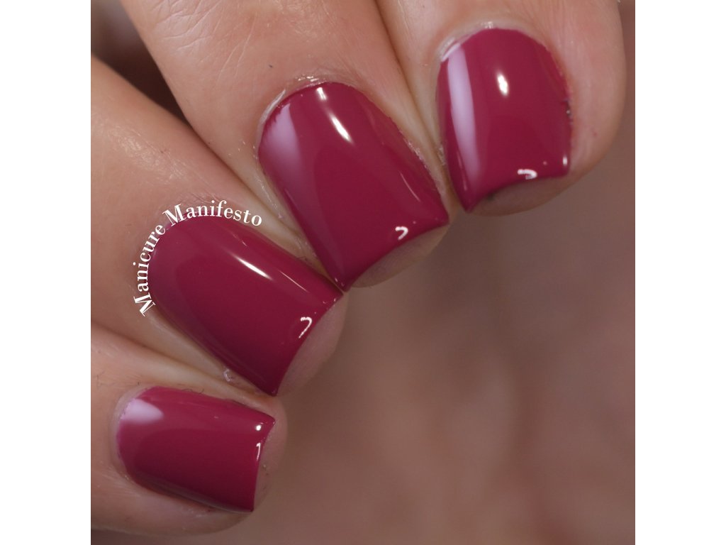 Ono značky Zoya je purpurový odstín zralých bobulí, krémový a plně krycí.