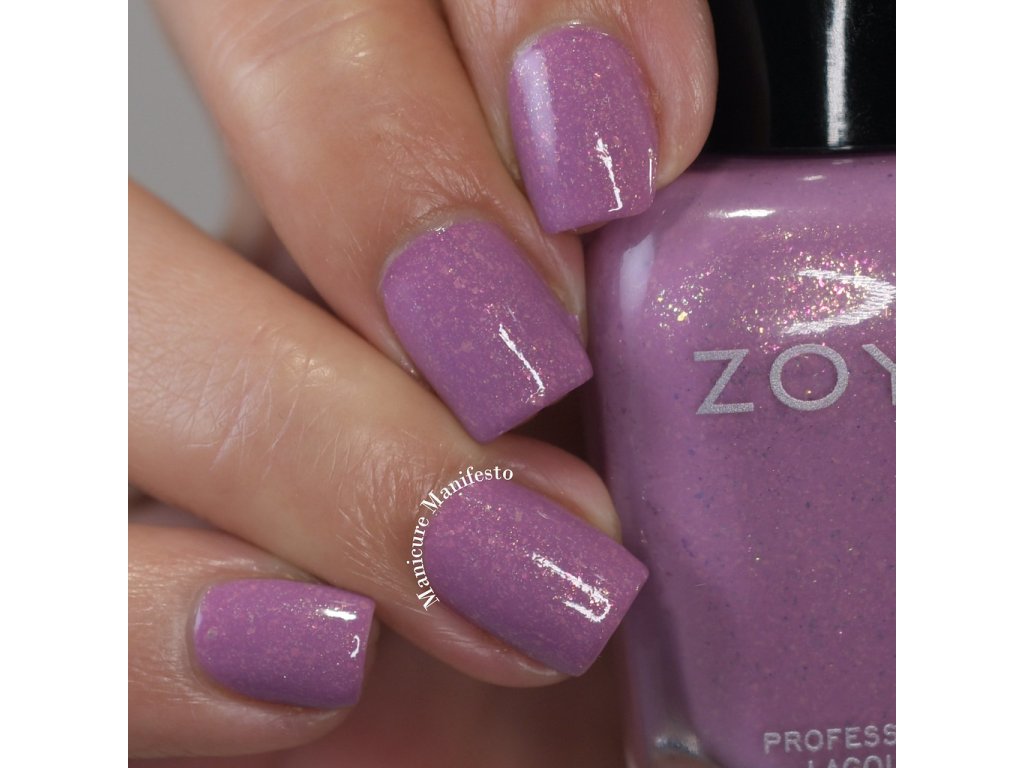 Precious značky Zoya je orchidejová nafialovělá s nádechem mikro vloček růžového zlata. Obsahuje Z-Wide Brush.