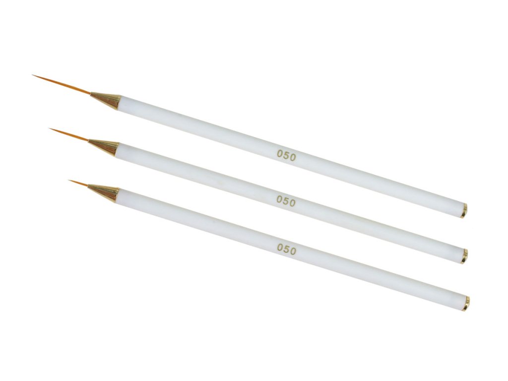 Set na zdobenie - štetce guľaté na dekorovanie nechtov. Umelý vlas. Rukoväť biela, plastová (14 cm), dĺžka vlasu 0,8/1,2/2,5 cm.